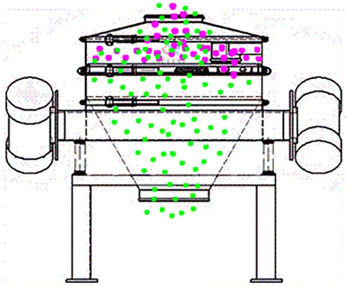 同樣是電機(jī)提供振動(dòng)源,物料從進(jìn)料口進(jìn)入,在振動(dòng)作用下,小顆粒穿過篩板到達(dá)出料口;篩機(jī)蓋使整個(gè)振動(dòng)篩稱為一個(gè)密封環(huán)境,物料就不會(huì)受到污染或亂飛;彈簧則是在振動(dòng)狀態(tài)下起到減震作用,如果沒有彈簧,振動(dòng)篩是無(wú)法工作的。