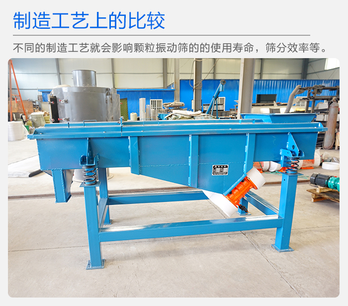 每個(gè)廠家的制造水平都不盡相同,而不同的制造工藝就會(huì)影響顆粒振動(dòng)篩的的使用壽命,篩分效率等。那么怎么判斷廠家的制造工藝的好壞呢?