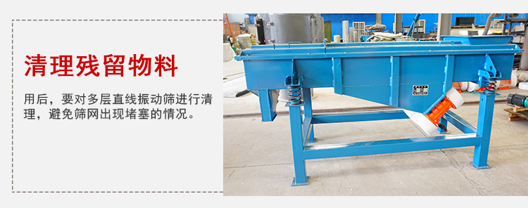 4、使用后,要對(duì)多層直線振動(dòng)篩進(jìn)行清理,避免篩網(wǎng)出現(xiàn)堵塞的情況。