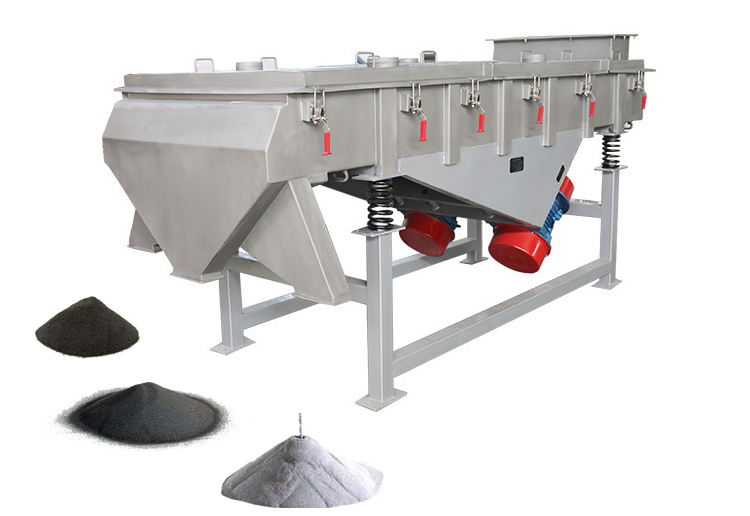直線振動篩簡稱直線篩,其主要功能是分級、過濾和除雜,以兩臺振動電機為振動源,使物料在篩面上直線跳躍,物料均勻進入篩面,各種規(guī)格的物料通過多層矩形篩網(wǎng)產(chǎn)生并從各個出料口排出。