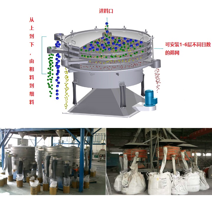 圓形搖擺篩采用仿人工篩分原理,用于準確分離1-6級粉粒,通常用于干燥、粉狀、顆粒狀產(chǎn)品的篩分、分級和除塵,特別適用于細、脆、輕等難于篩分的產(chǎn)品。