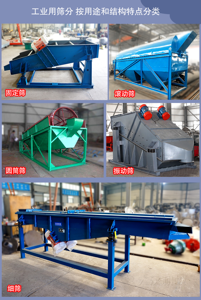 工業(yè)用篩分機 按用途和結(jié)構(gòu)特點大致可分為: