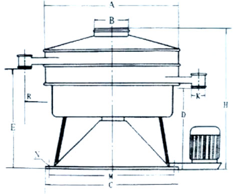 圓形搖擺篩主要由進料口、上蓋、觀察孔、篩框、密封圈、出料口、網(wǎng)架、束環(huán)、主樞軸總成、調(diào)整塊、彈簧、主軸總成、皮帶輪、底座、檢查孔、電機等部分組成。